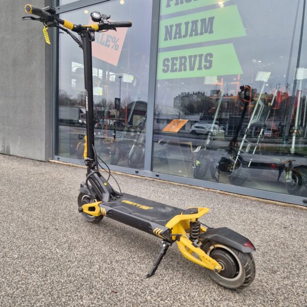 Romobil je nov, ima malu ogrebotinu na stupu volana. Ima 2 motora od 1400W s maksimalnom vršnom snagom od 4200 W i visokokvalitetnom 60V baterijom od28Ah – LG s kojom ćete postići maksimalnu brzinu do 80km / h (ograničenu na 25Km / h u skladu s propisima pojedinih članica EU) i domet do 130 km. Sve to je uključeno u samo 36-39 Kg težine! Za sigurnost pri vožnji brinu se najkvalitetnije hidraulične kočnice, regenerativno kočenje, NFC otključvanje itd..