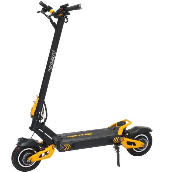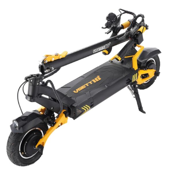 Električni romobil VSETT 10 Light, fantastičnog i modernog dizajna uključuje 2 motora od 1000W s maksimalnom vršnom snagom od 2200 W i visokokvalitetnom 52V baterijom od 17,5Ah – LG s kojom ćete postići maksimalnu brzinu do 50km / h. U odličnom je stanju, korišten je vrlo malo za potrebe probnih vožnji.