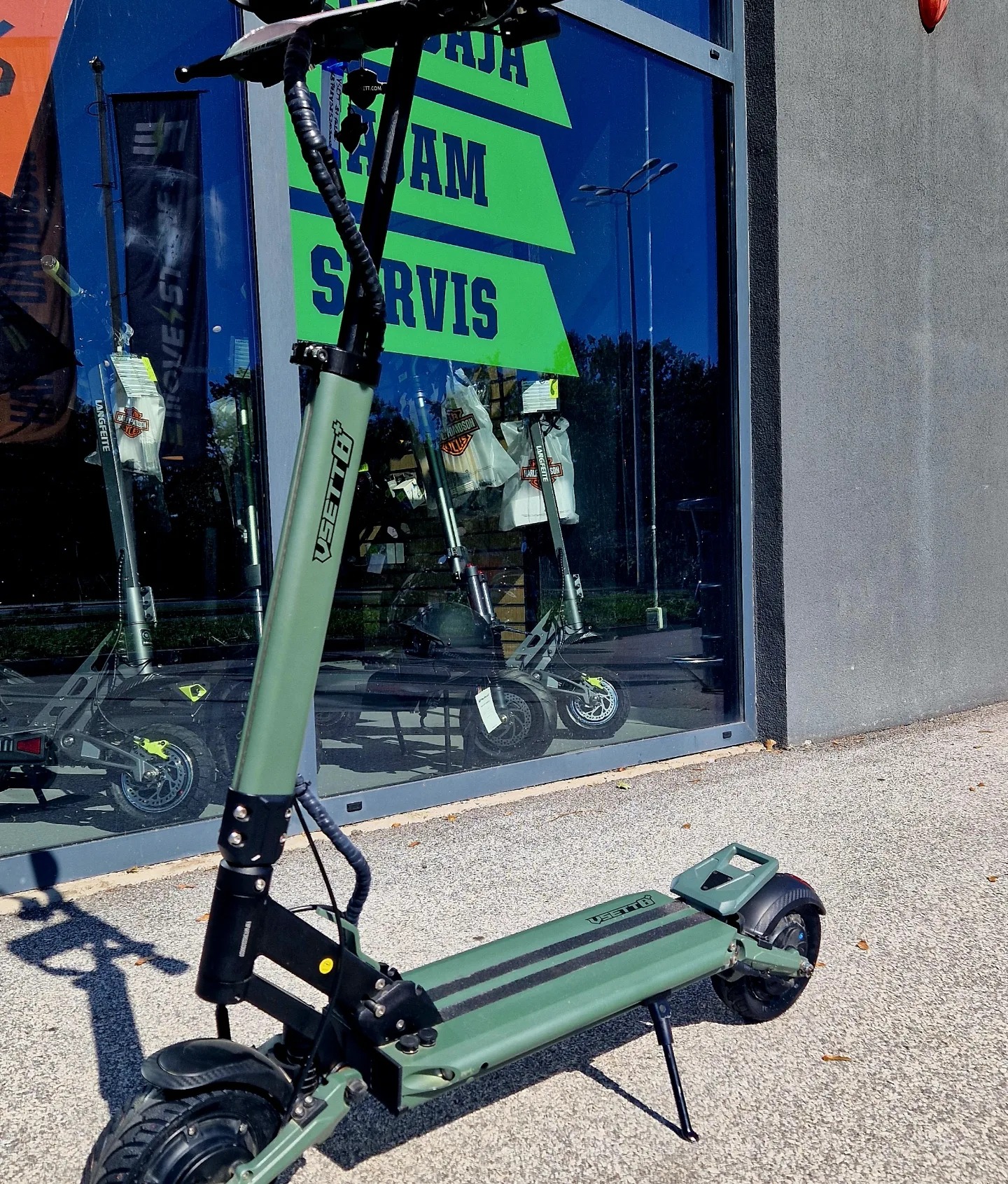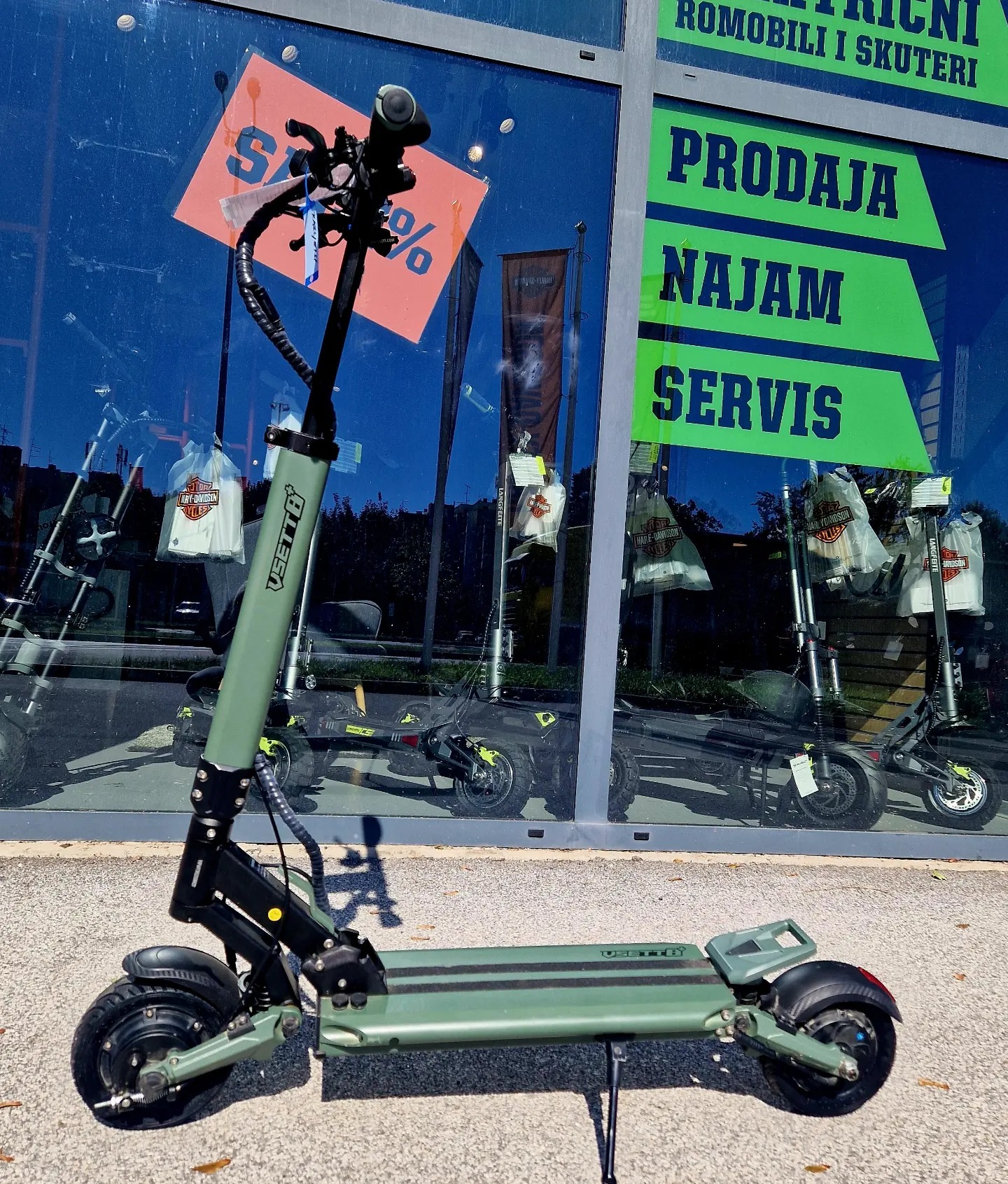 Prodajemo DEMO rabljeni električni romobil VSETT 8+ sa pređenih 1302 Km. Vsett 8+ je fantastičnog i modernog dizajna uključuje 2 motora od 600W s maksimalnom vršnom snagom od 1200 W i visokokvalitetnom baterijom od 16 Ah s kojom ćete postići maksimalnu brzinu od 45 km / hMotor: Dva motora od 600 W (vršna snaga oba motora zajedno: 2200 W)